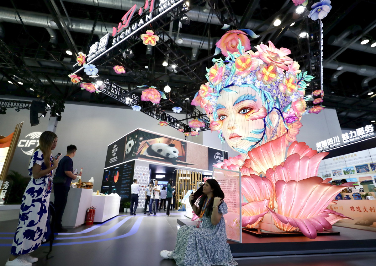 Visitors check out a colored lantern at the Sichuan province exhibition stand during the 2024 China International Fair for Trade in Services in Beijing on Sept 12. ZHANG WEI/CHINA DAILY