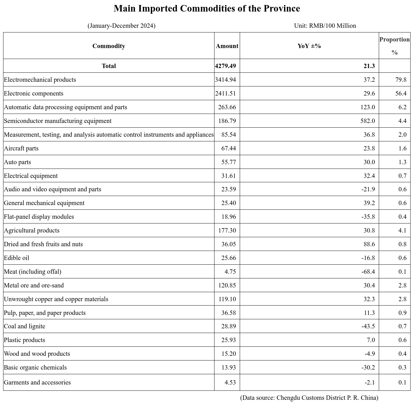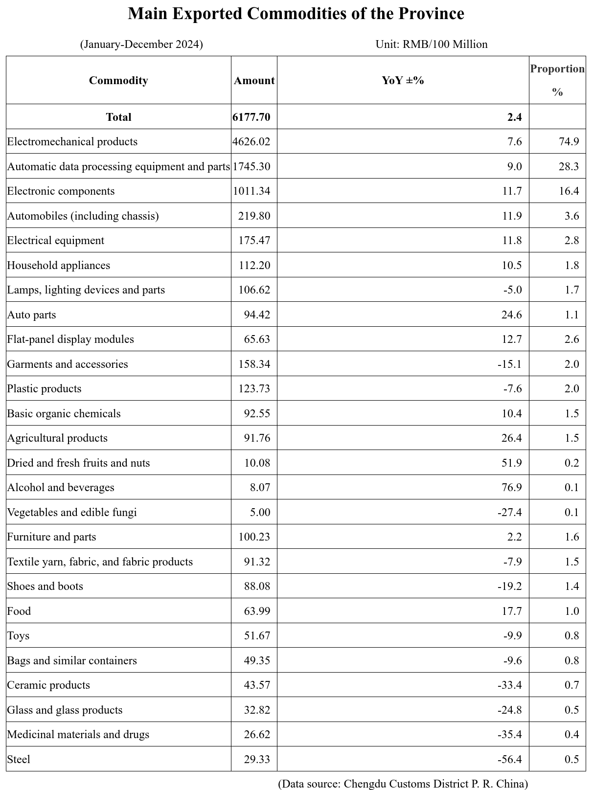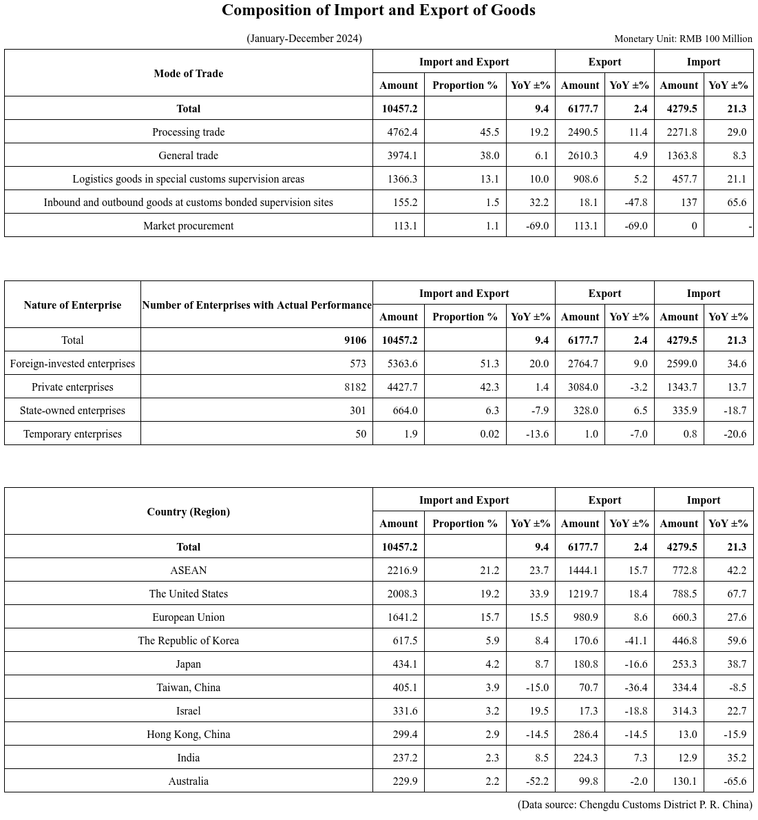 Foreign Trade Statistics of Sichuan Province (January-December 2024)
