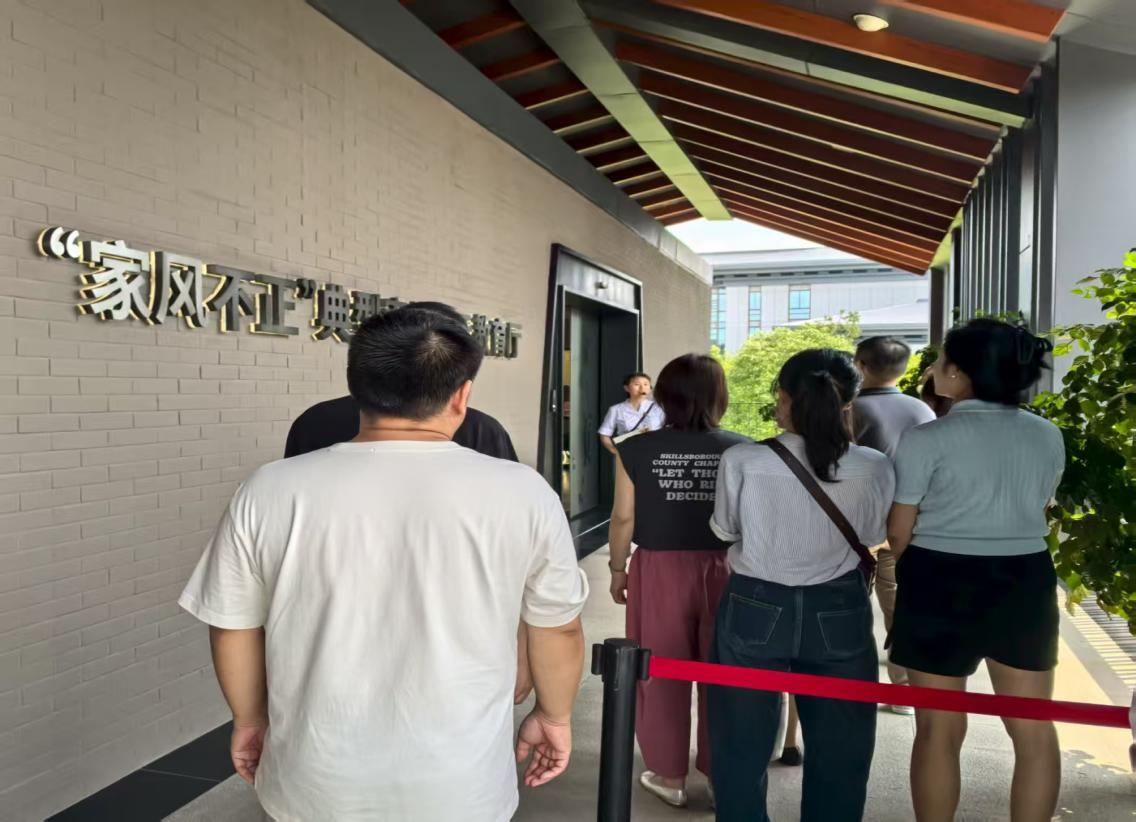 展厅内,全体职工在讲解员的带领下,依次参观了“警钟”“案鉴”“启示”三个板块,通过图文、视频等形式学习了家风败坏导致的腐败案例,并通过参与答题、“家风三问”等互动环节,让大家直观感受到违纪违法给个人、家庭和社会带来的严重危害,进一步加深对家风建设重要性的认识。