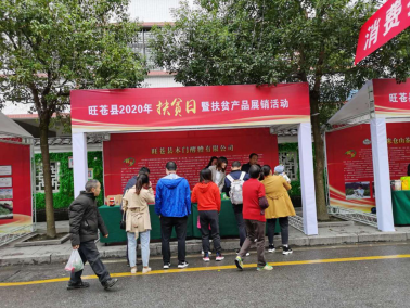 在展销活动现场,所有路边临时摊点都陈列着旺苍农特产品和扶贫产品,老百姓纷纷前去咨询、购买。据悉,这样的展销活动,是以消费的方式刺激旺苍农特产品发展,带动消费扶贫,促进贫困群众致富增收。