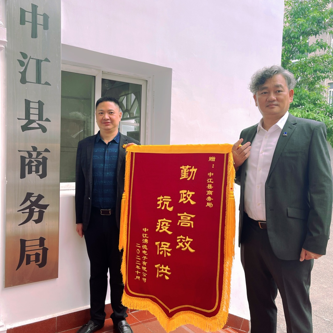 | “太感谢你们了,在中江县静态管理期间为我们提供了极大支持,帮我们解决了大问题……”10月19日上午,在中江县商务局,“勤政高效,抗疫保供”几个大字印在锦旗上,中江湧德电子有限公司总经理李豐光握着德阳市中江县商务局局长刘虎的手满怀感激地说道。