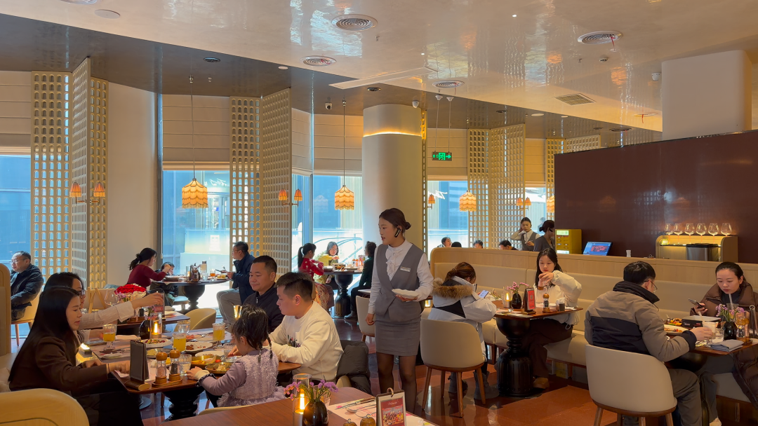 与此同时,宜宾万象天地凭借“轨道上的商业公园”定位和“公园+街区+MALL”复合业态,也迎来客流高峰。某餐饮店负责人黄金鑫表示,客流量超出预期,不少外地游客前来打卡,为春节消费旺季带来信心。西餐店主理人邹晓安告诉记者,商场硬件品质和运营能力为顾客提供了全新消费体验。游客陈倩带家人前来游玩,也感受到浓厚的节日氛围与热闹场面。