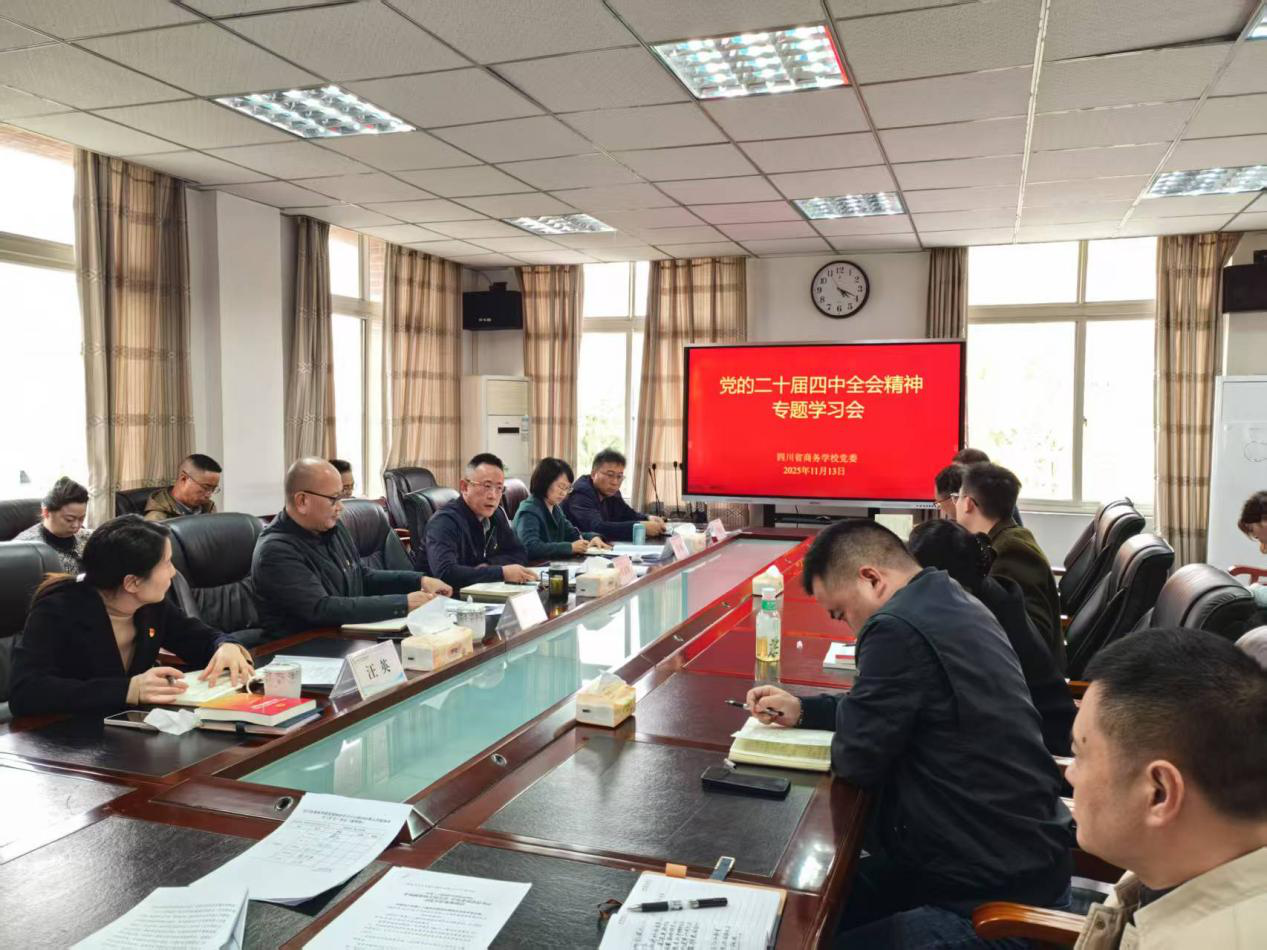 | 2025年11月13日(星期四)下午3点,商务学校党委理论学习中心组2025年第八次集体学习会议(扩大)暨党的二十届四中全会精神专题学习会在行政三楼第一会议室顺利召开。会议由党委书记李文川同志主持,中心组成员、校领导、中层干部、党支部书记及党支部委员参加了此次学习。