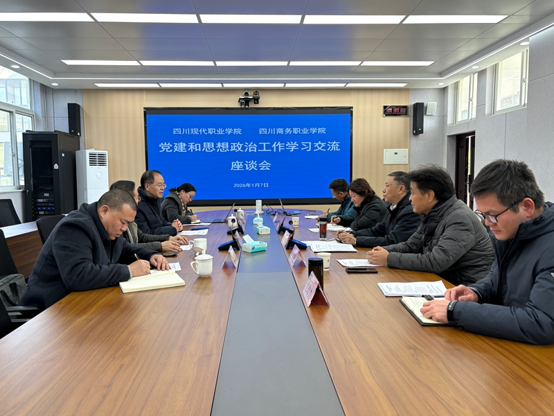 | 1月7日,四川商务职业学院与四川现代职业学院举行座谈会,开展党建和思想政治工作结对共建。会议由学院党委委员、副院长王军主持,学院党委书记唐柯出席会议并讲话。