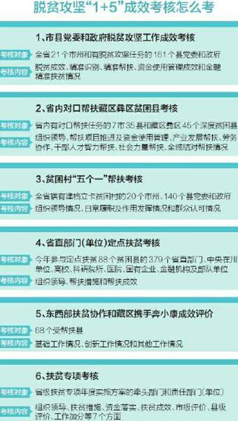 如何考?省扶贫开发局相关负责人介绍,具体而言,就是将党委和政府脱贫攻坚工作成效考核、省直部门(单位)定点扶贫考核、扶贫专项考核、省内对口帮扶藏区彝区贫困县考核、贫困村“五个一”帮扶考核、东西部扶贫协作和藏区携手奔小康成效评价统一整合为脱贫攻坚成效考核,一支队伍完成所有考核。