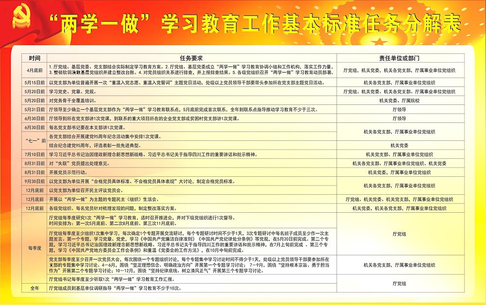 “两学一做”学习教育工作基本标准任务分解表