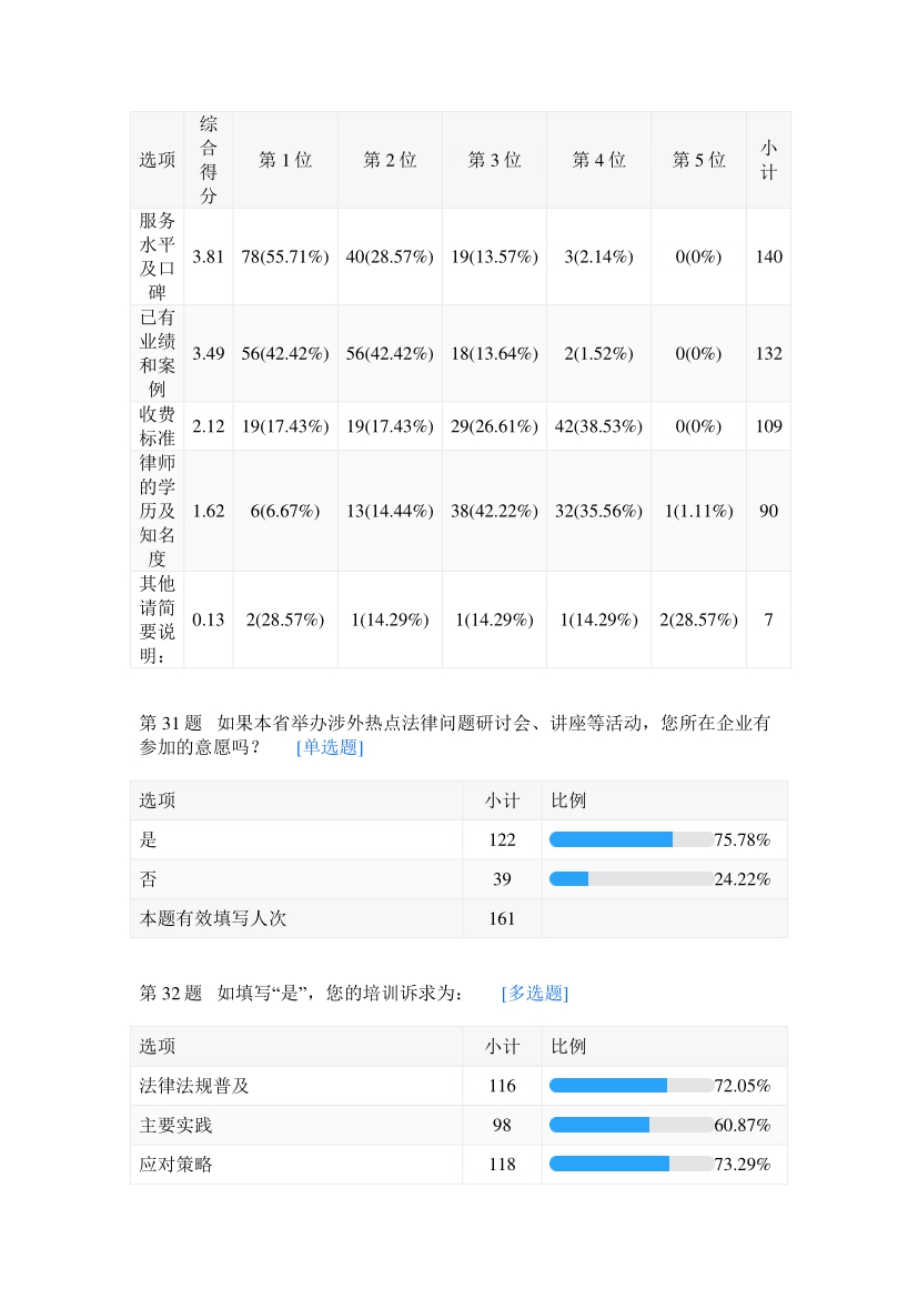【调查结果】四川省涉外企业法律服务需求问卷调研