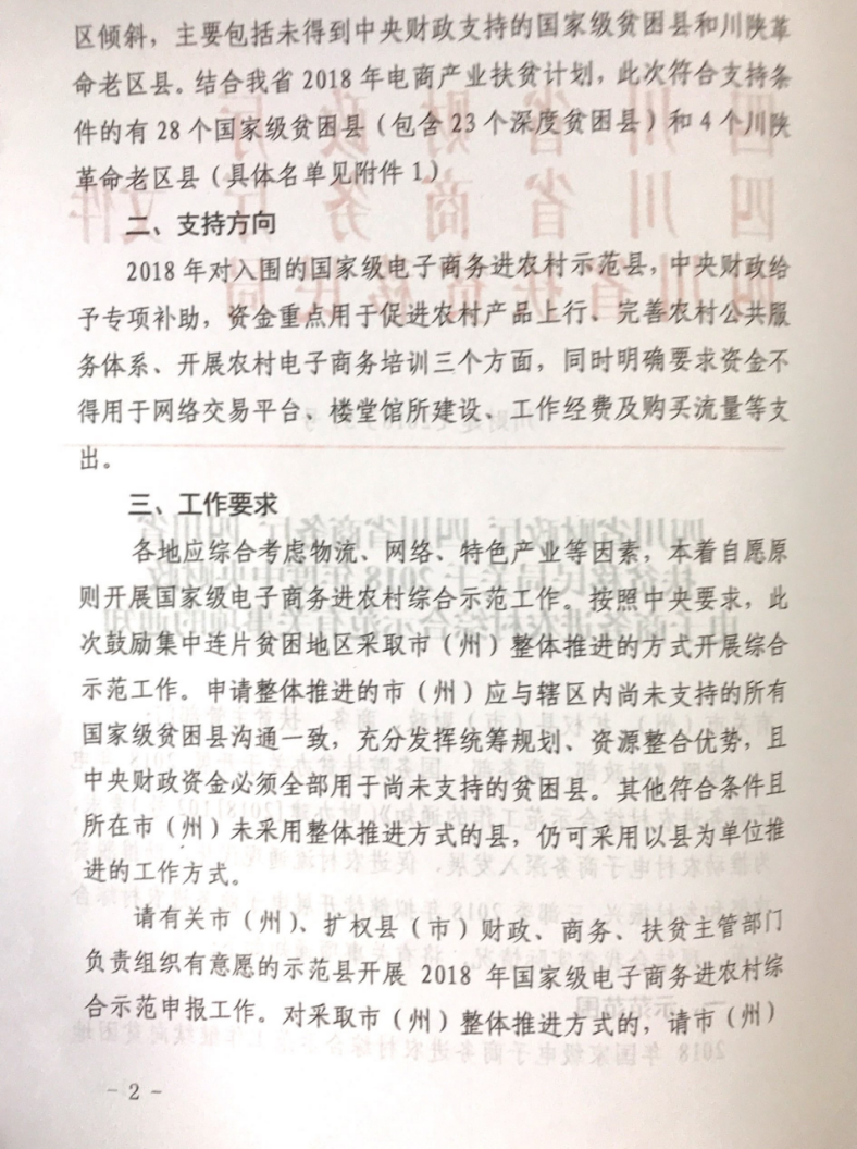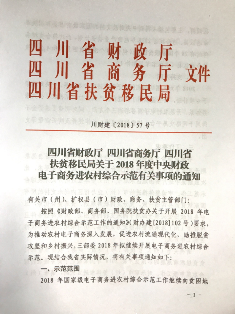 四川省财政厅 奈菲影视 四川省扶贫移民局关于2018年度中央财政电子商务进农村综合示范有关事项的通知