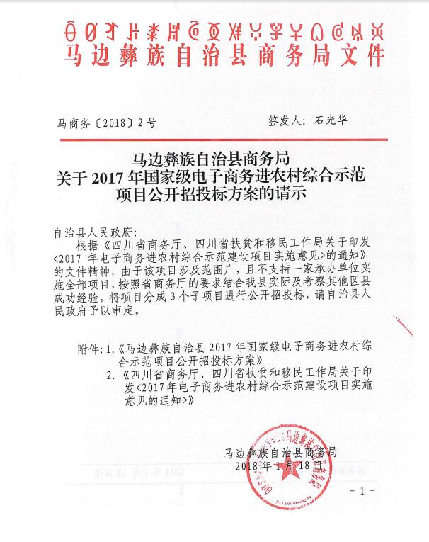 马边彝族自治县商务局关于2017年国家级电子商务进农村综合示范项目公开招投标方案的请示