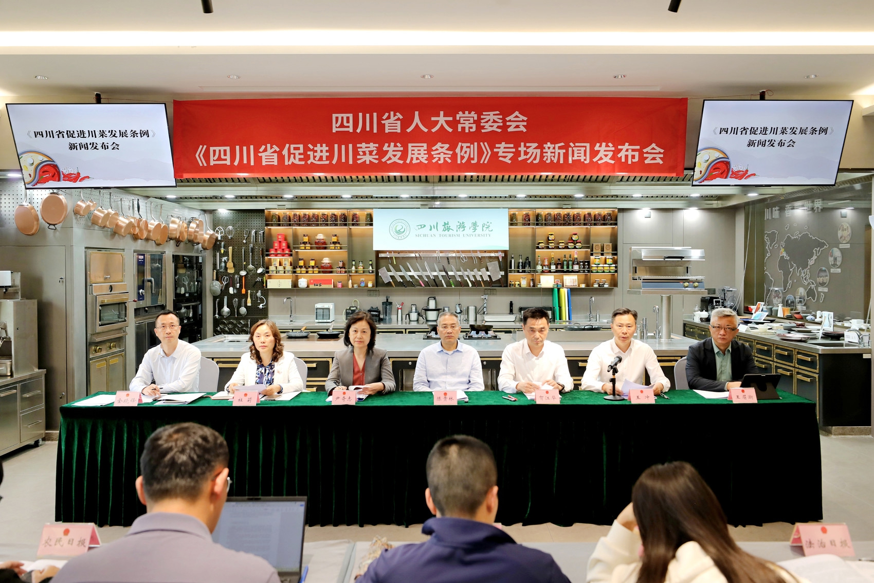 4月29日,四川省人大常委会首个法规专场新闻发布会——《四川省促进川菜发展条例》(以下简称《条例》)新闻发布会在四川旅游学院烹饪与食品实验管理中心召开。与会者在鼎鬲簋簠的变迁中,在一本本泛黄的菜谱中,沉浸式感受川菜与时俱进的独特魅力。